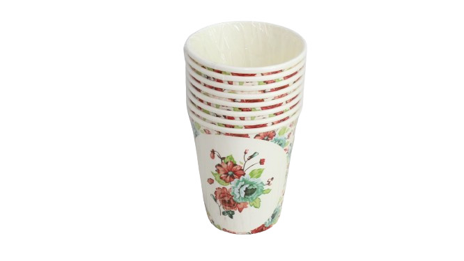 Paper Cups 8pc 265ml Flower