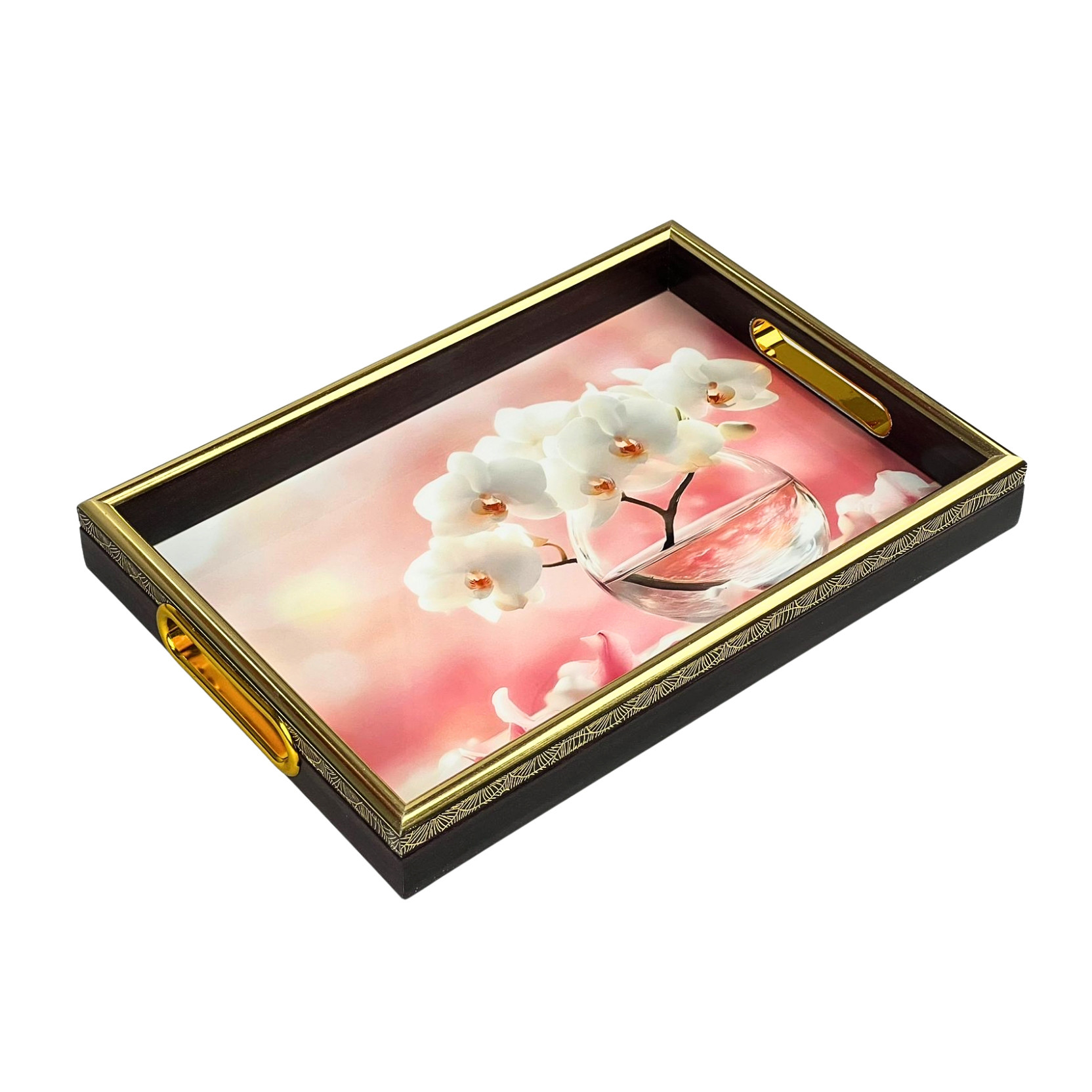 Acrylic Tray Mahogany + Flower Print 32x22cm