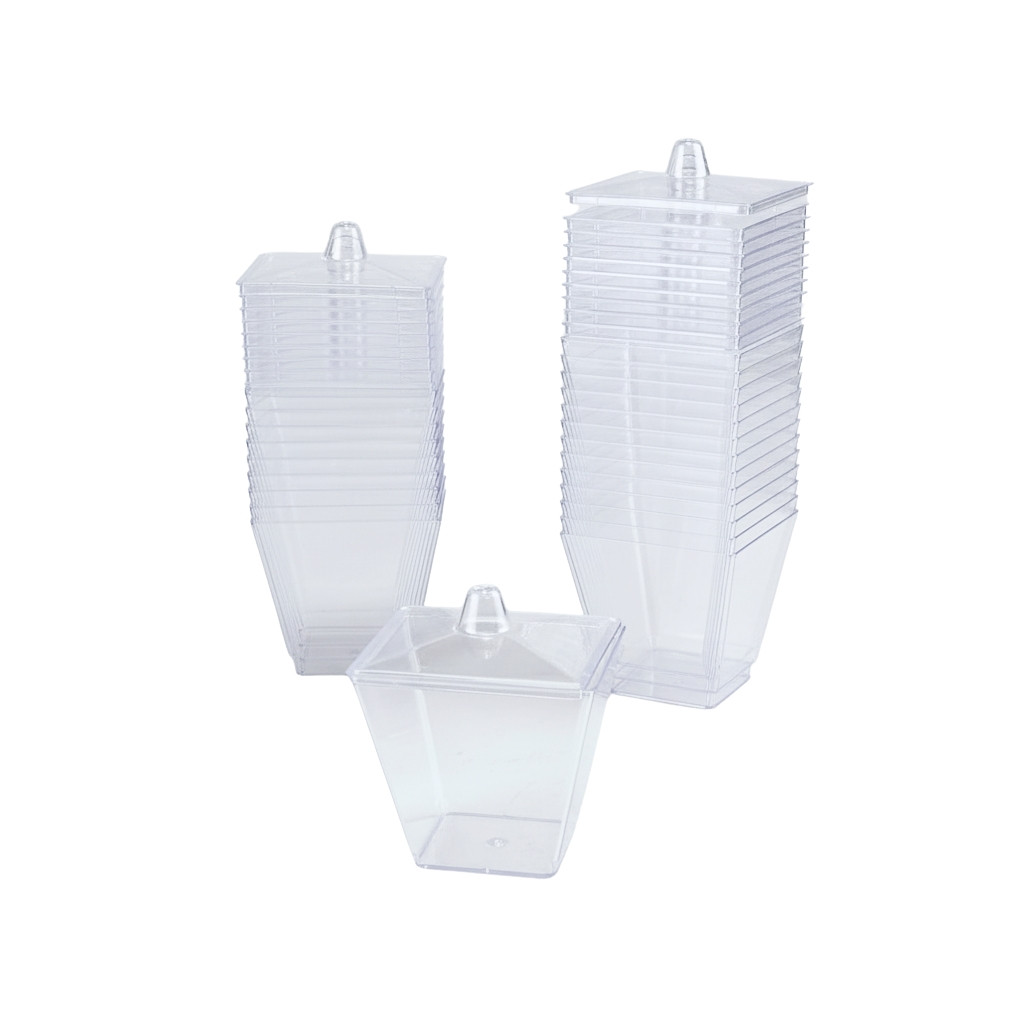 Disposable Dessert Cup&Lid Sqr 60ml 24Pc