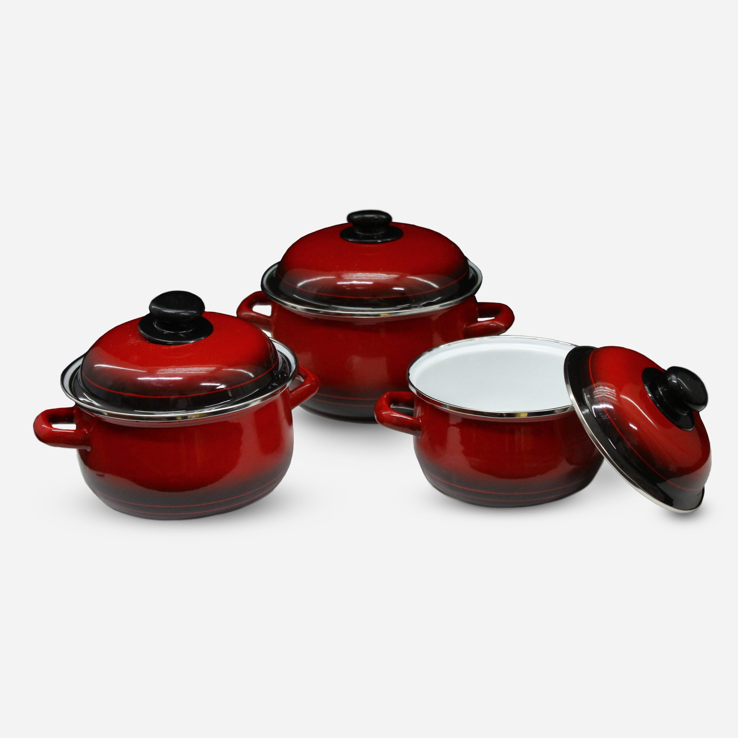 Pot 3Pc Set Enamel Red 16/18/20cm