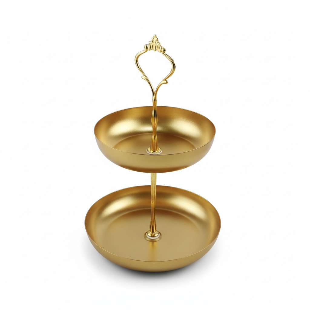 Gold Metal Cake Stand 2Tier 16x23cm