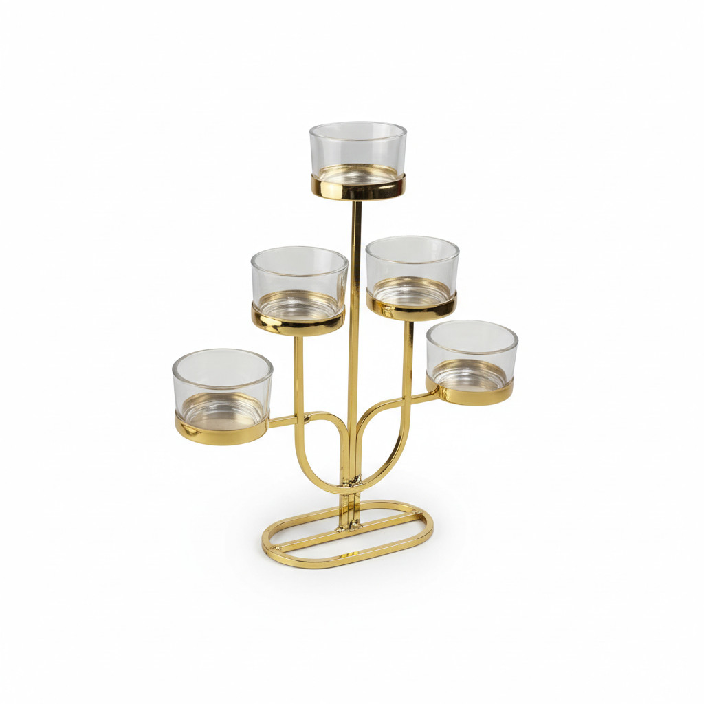 Home HOME & DECOR Decorative Tableware Gold Metal Candle Holder Stand 5 Heads 20.3×5.7x20cm