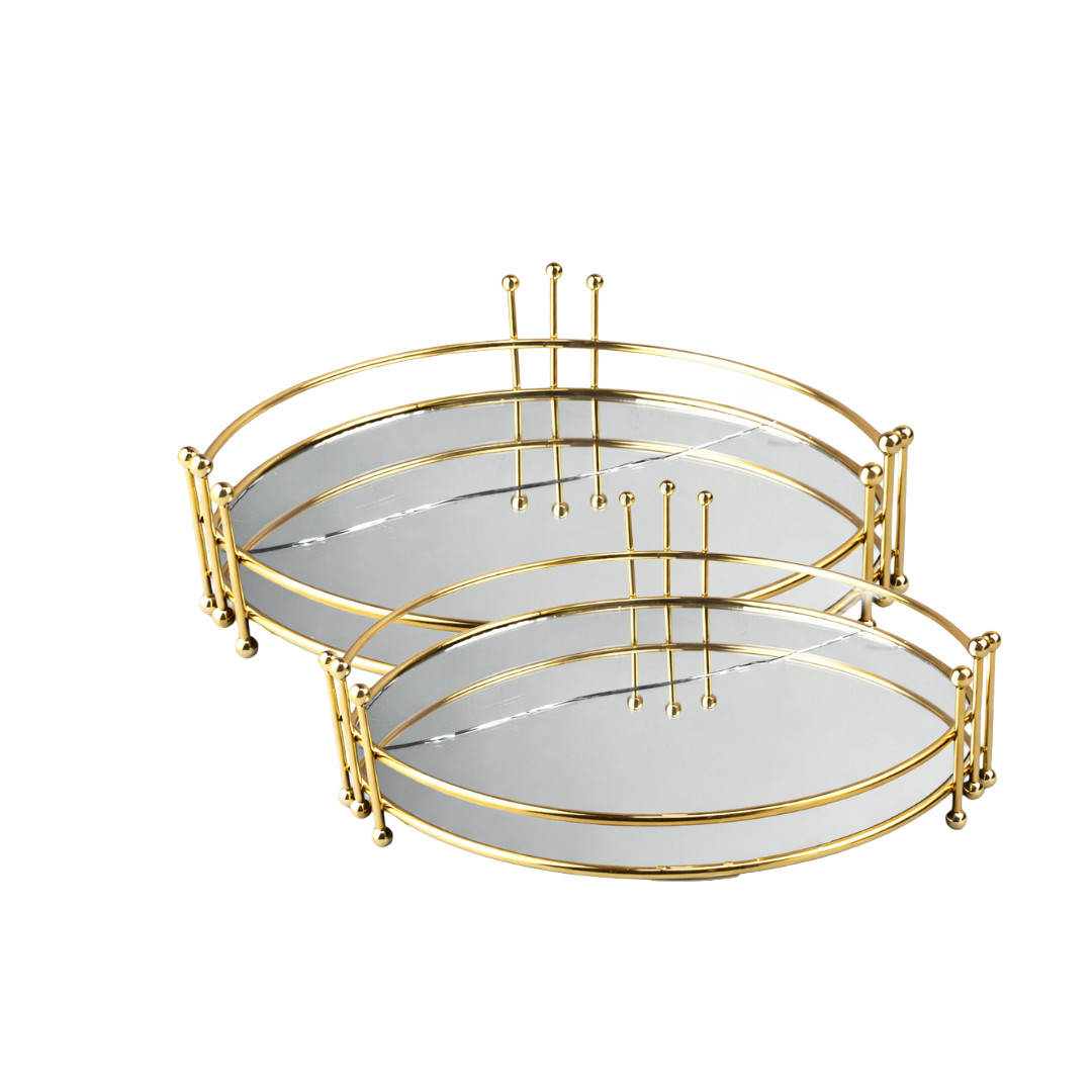 Gold Metal Mirror Tray 2PC 20.5 & 25.5cm