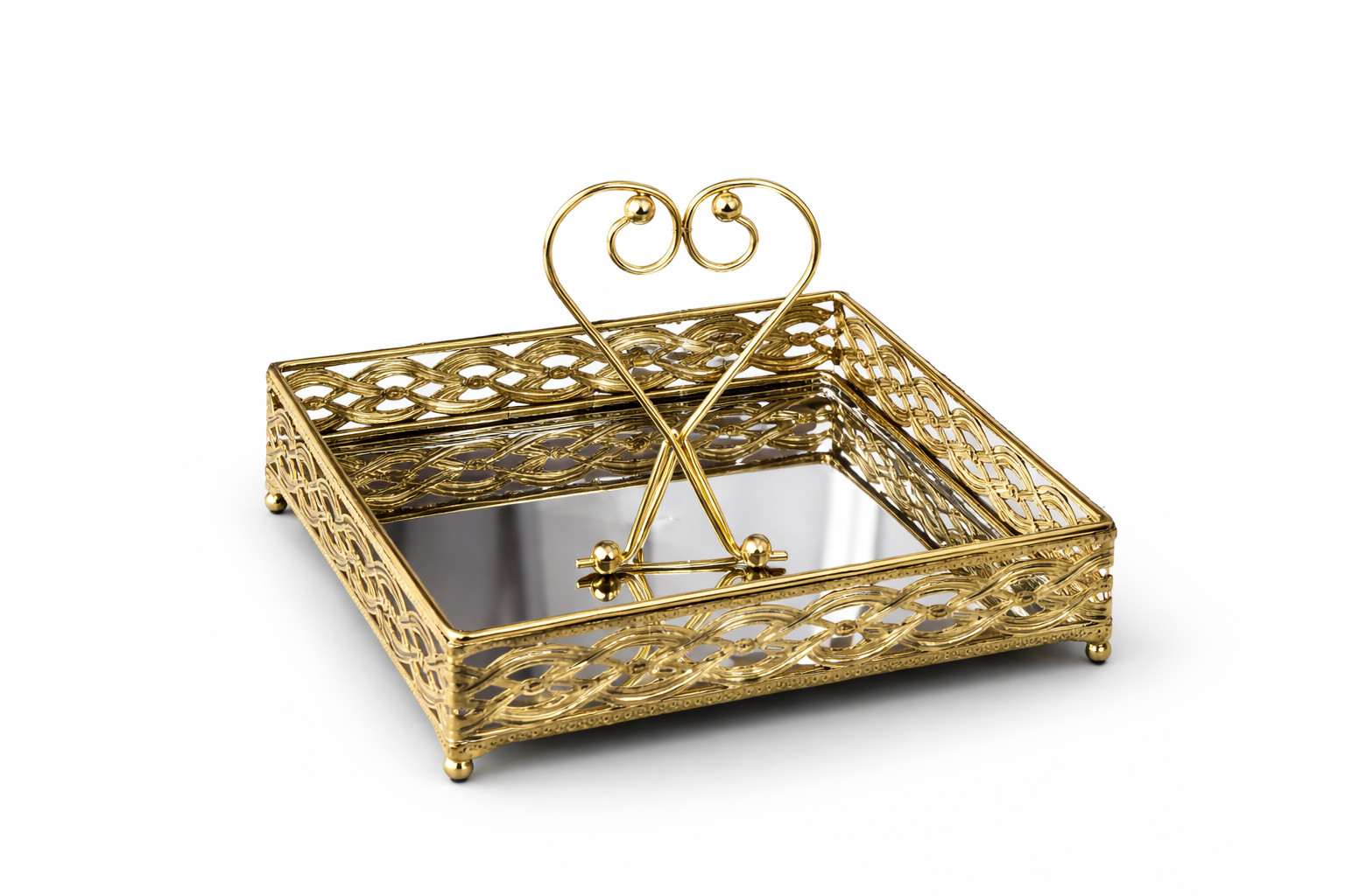 METAL MIRROR TRAY W/HANDLE 20X20X15.5CM
