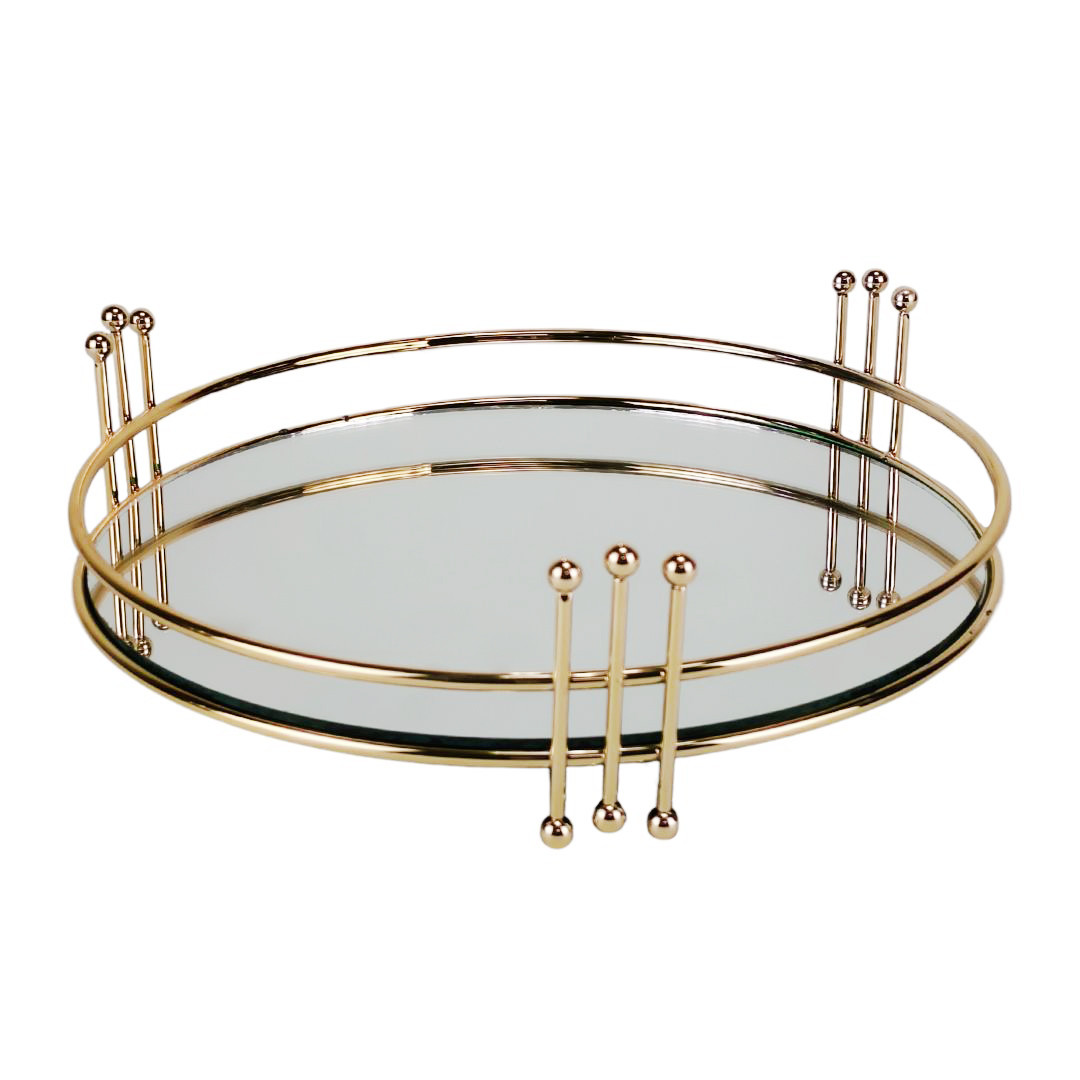 Tray Mirror Gld Metal 28x24cm Hexa
