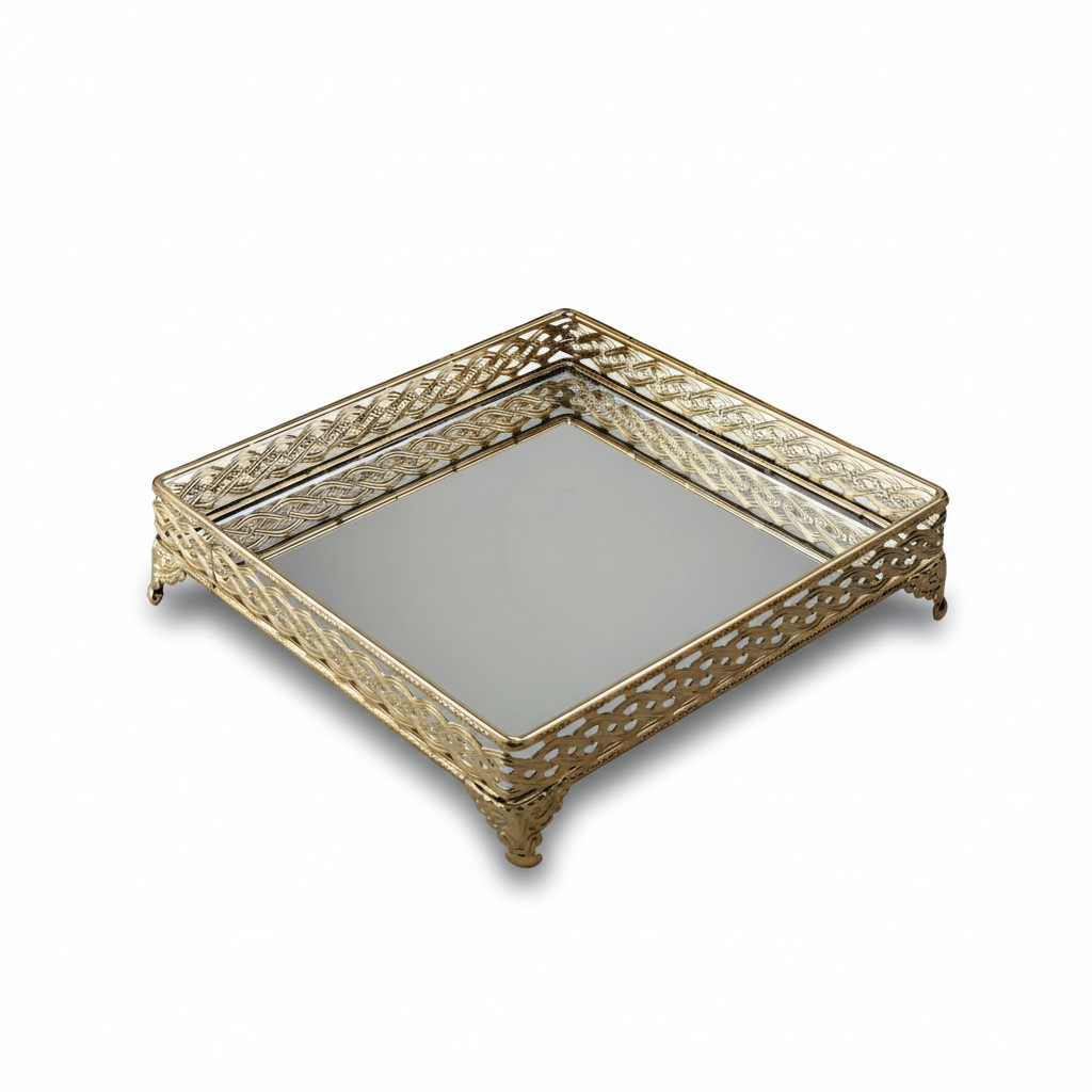 METAL MIRROR TRAY W/HANDLE 20X20X15.5CM