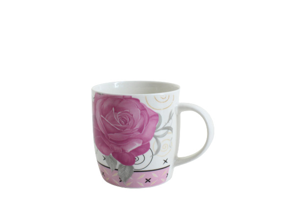 Pink Rose Glass Mug Rnd Belly 384Ml