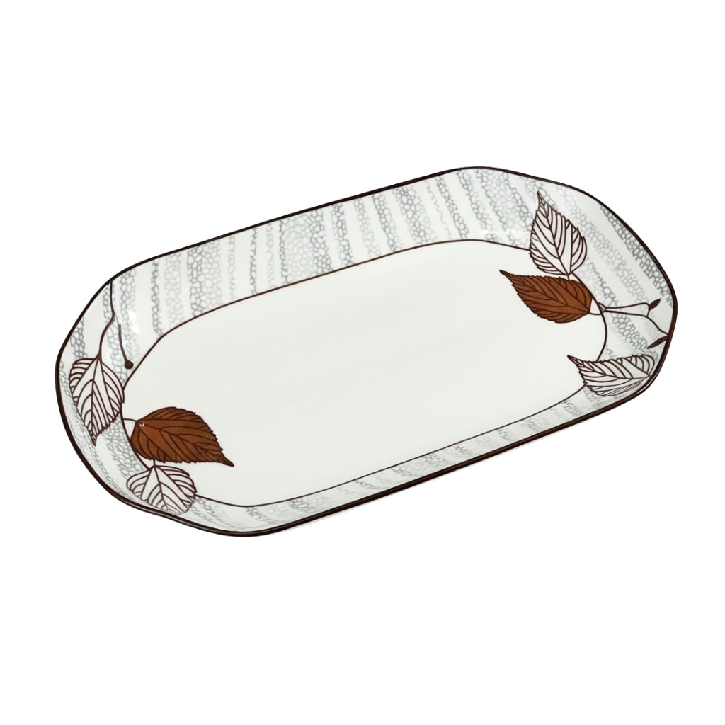 Porcelain Rect Plate Leaf Print 32×18.5cm