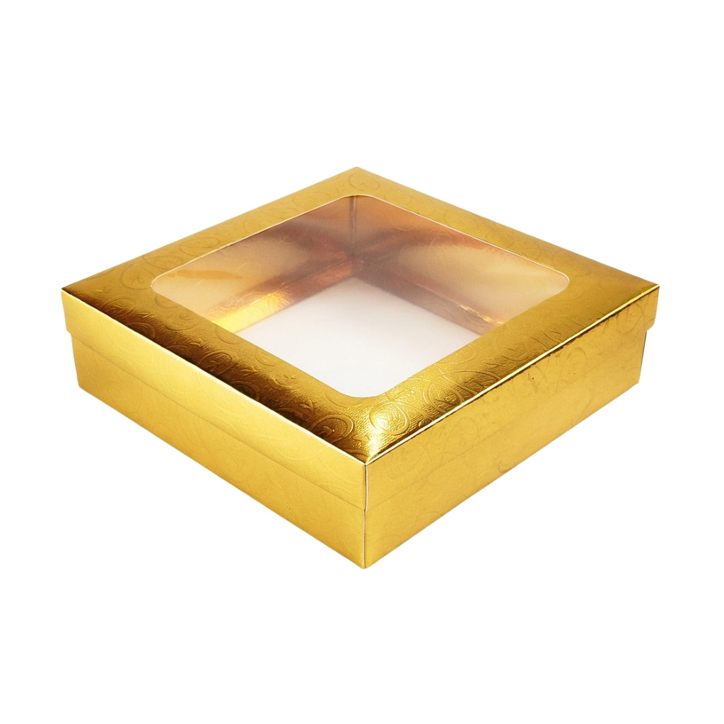 Paper Box & Window Gld Sqr 15X15X4cm
