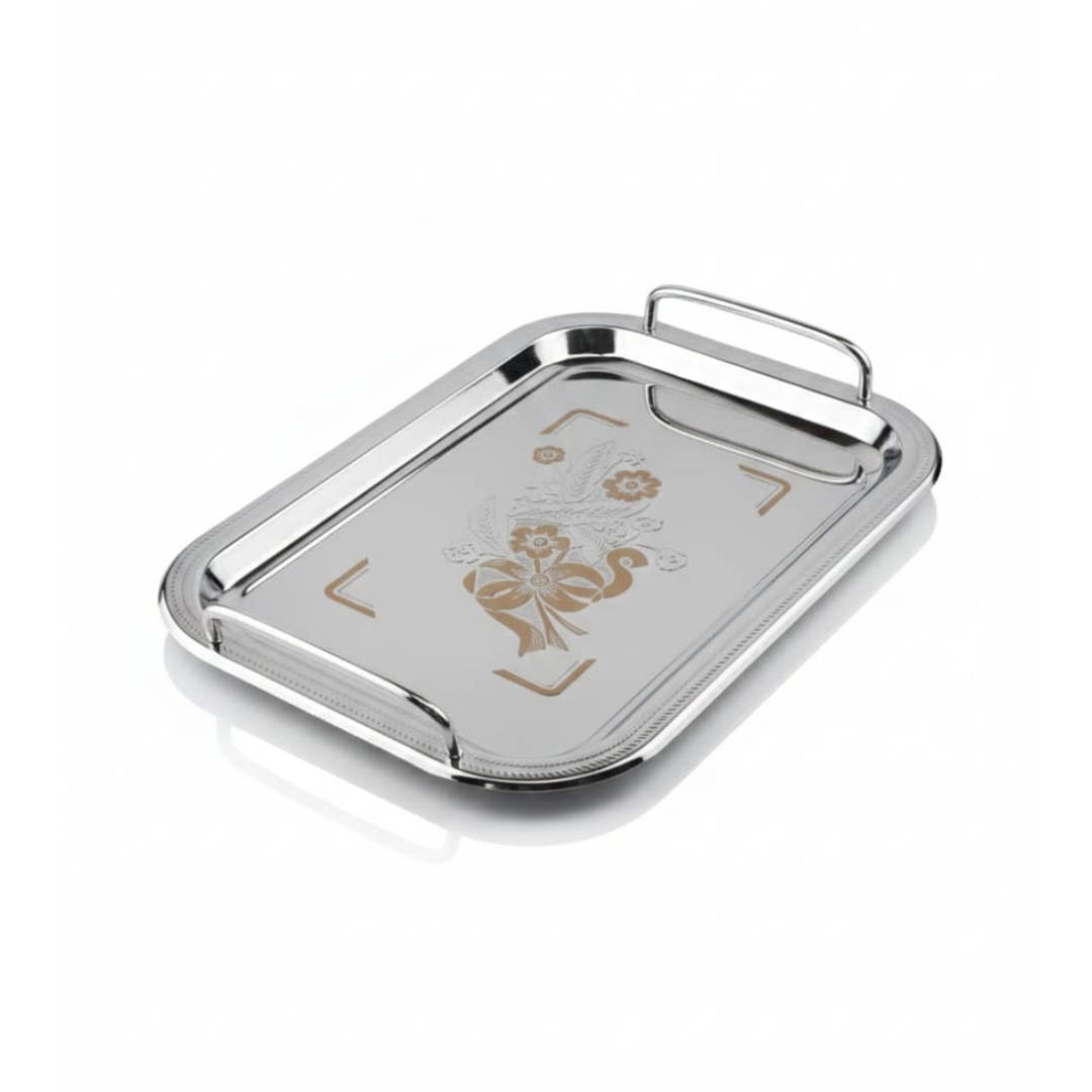 Tray Rect S/Steel with Flower Design 41*29cm