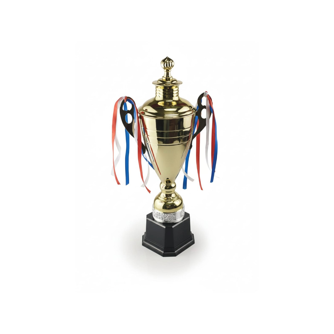 Trophy Cup & Ribbon Gld Metal 45cm