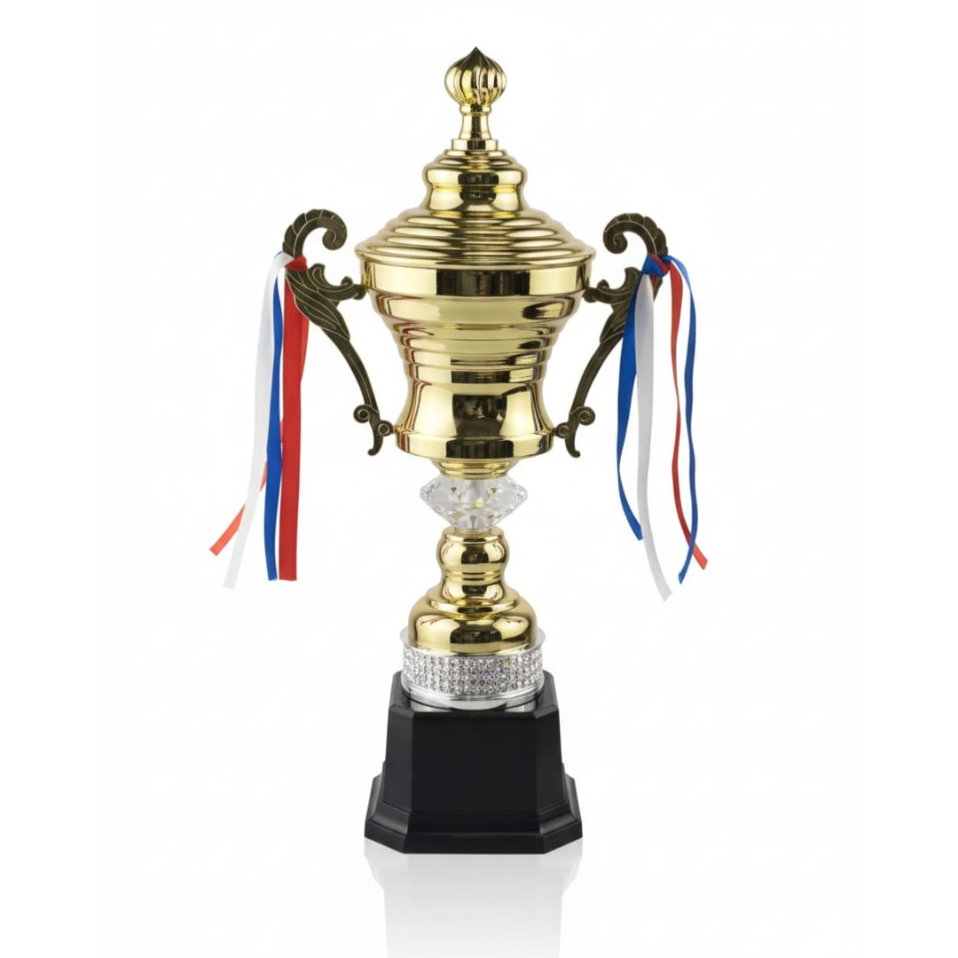 Trophy Cup & Ribbon Gld Metal 50cm